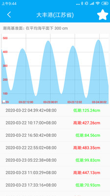 1、在上面可以查看到每一次潮汐的数据,并且自动为你进行数据的更新,了解最新的数据。