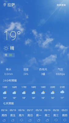 2、拥有24小时准确天气,同时还附带温度、降水、分级、气压等天气数据。